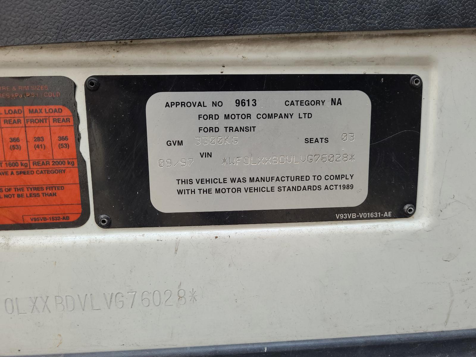 TRANSIT 1996 – 2000 VF-VG, LOW/MID/HIGH ROOF, 05/96-09/00